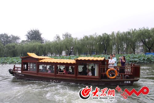 進(jìn)入大名湖公園后,采訪團(tuán)直接乘坐游船飽覽湖面美景,清水依依、荷葉顫顫、濟(jì)南特有的城市風(fēng)情讓大家流連忘返,位于濟(jì)南市中心的大明湖是4A級(jí)景區(qū),被譽(yù)為“泉城明珠”,同趵突泉、千佛山并稱濟(jì)南三大名勝。
