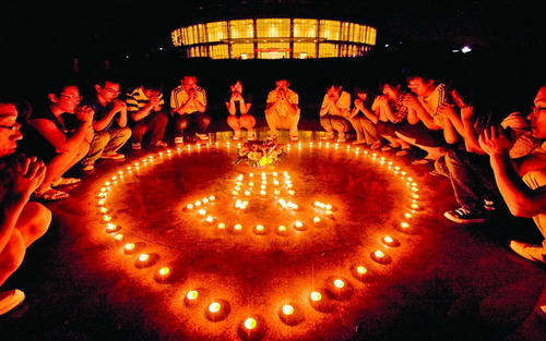 于是學生們輕輕地走到蠟燭的外圍,每個人都安靜地守著,蠟燭繼續燃起。