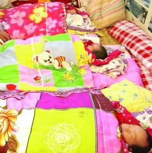 在陶華江姨媽家記者看到,院子里掛滿了剛洗完的尿布,陶華江正在給孩子收拾晾干了的尿布。見到記者到來,陶華江立即起身迎上來,強擠出一絲笑意示意讓記者進屋,記者注意到這位曾經當了5年武警的硬漢,眼圈依然通紅,顯然還沒有從痛失愛妻的悲慟中走出來。在陶華江的指引下,記者在西側的房間里看到了三胞胎姐妹,三個小家伙齊刷刷的躺在炕上,小嘴不停地蠕動著,好像要跟記者說些什么,由于孩子屬于早產兒,現在的身體狀況還很虛弱,記者生怕孩子受到感染沒有進入孩子房間里,只隔著房間探視了一下孩子。“孩子現在的狀況還可以,沒有人打擾的情況下都很聽話,可是不知道為什么,孩子只要一聽到相機的拍照聲就會哇哇大哭,餓了的時候也會哭,她們現在每天都會喝掉大半包奶粉,可能是身體需要,孩子們很能吃,這一點我心里還感覺到很欣慰,只要孩子身體好,能夠健康成長我就放心了,也能對得起孩子的媽媽了……”陶華江流著眼淚悲傷的對記者說。