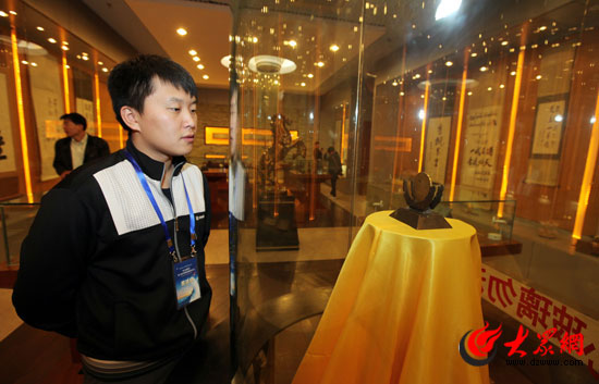采訪團(tuán)記者瀏覽張裕酒文化博物館內(nèi)的獎?wù)隆?/P>