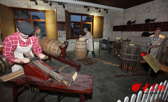 張裕酒文化博物館中實景展示葡萄酒軟木塞制作。