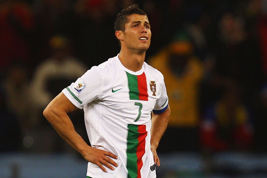C羅的身價(jià)是本屆世界杯上首屈一指的最昂貴的球星。盡管小組賽三場球,他全部都是官方當(dāng)場最佳、盡管在對朝鮮的比賽中成功“破球荒”,整體上看,他的21腳射門質(zhì)量還可以,但這些都改變不了克里斯蒂亞諾-羅納爾多在本屆比賽中的定位:08年世界足球先生,在2010年世界杯上完敗。賽后泣不成聲遭遇毀滅性打擊:悲傷無法想象。