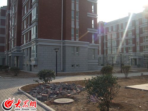 1月10日早上,大眾網記者走進外海中央花園,曾經承諾2008年6月30日交房的“風景優美的中高檔社區”依舊是一片荒涼,樓前的綠化帶上不見綠植只有土坷,甚至有的堆放著大塊的建筑廢料。規劃中小區東面的大道如今還是一片狼藉。稀稀拉拉的幾個施工人員在不慌不忙的鋪設路燈,其中一位告訴記者:“聽說開發商沒有給我們老板錢,所以我們來干活的也不多,這不,連路燈的主電線用什么型號材料還沒定呢”。