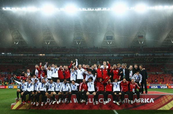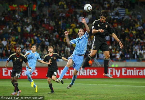 搜狐體育訊 北京時(shí)間7月11日凌晨2點(diǎn)30分,第19屆南非世界杯3、4名的決賽,在伊麗莎白港納爾遜-曼德拉灣球場(chǎng),兩支失意半決賽的德國(guó)隊(duì)和烏拉圭隊(duì)將為榮譽(yù)而戰(zhàn)。最終,德國(guó)隊(duì)3-2力克烏拉圭,繼四年前的本土世界杯后再次蟬聯(lián)了季軍。第19分鐘,穆勒將施魏因斯泰格的遠(yuǎn)射補(bǔ)入空門。第28分鐘,卡瓦尼接蘇亞雷斯妙傳,單刀赴會(huì)推射遠(yuǎn)角得手。第51分鐘,弗蘭禁區(qū)內(nèi)的精彩凌空射門反超了比分。第56分鐘,揚(yáng)森頭球再次將比分扳平。第81分鐘,赫迪拉利用角球機(jī)會(huì),頭球鎖定勝局。