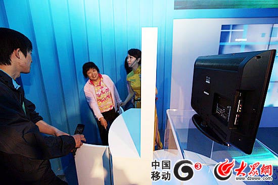 山東館最大亮點在未來廳,未來廳也吸引了最多的參觀者。在全球首臺無尾電視機跟前,眾多參觀者湊到電視后面,尋找電視如何供電,如何傳輸信號的答案。