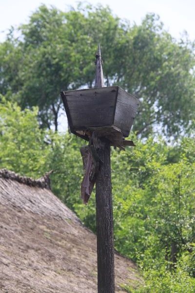 索倫桿上部是用來盛裝谷物供烏鴉啄食。