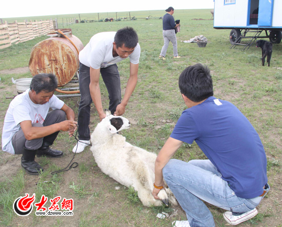 鄂溫克人熱情好客,為了歡迎采訪團的到來寶音巴圖專門宰殺了一只肥羊。