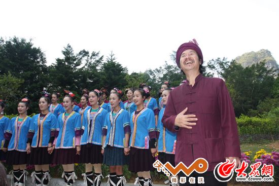 大眾網(wǎng)-聯(lián)通3G陽朔11月22日訊(特派記者 劉國棟)走進一個民族,首先要認識的就是這個民族最能代表其文化的東西。對于侗族來說,最能代表侗族文化也最廣為人知的,想必就是侗族大歌了。侗族大歌是我國侗族地區(qū)一種多聲部、無指揮、無伴奏、自然合聲的民間合唱形式,歷史上分布在整個侗族南部方言區(qū),目前主要流行于侗語南部方言第二土語區(qū),其中心區(qū)域在黎平縣南部及與之接壤的從江縣北部、以及榕江縣車江、宰麻一帶。不過我們對于侗族和侗族大歌的采訪卻主要放在了桂林陽朔蝴蝶泉畔,因為那里有一個人,據(jù)說他在侗鄉(xiāng)無人不知無人不曉,據(jù)說是他讓侗族大歌唱的更遠唱的更響,這個人叫做吳金敏。