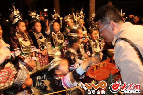 進小黃侗寨必須先喝攔門酒,敬酒的唱歌的主要是侗寨的娃娃們。