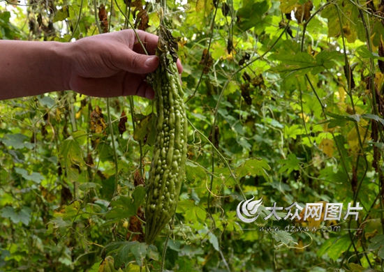 貧困戶王瑞見去年開始種大棚,上半年種黃瓜,下半年種苦瓜,年純收入達(dá)到了3萬元,順利實(shí)現(xiàn)脫貧。(記者 王宗陽 攝)