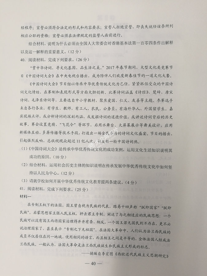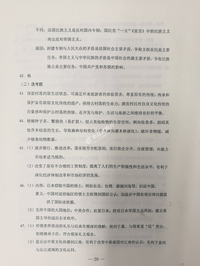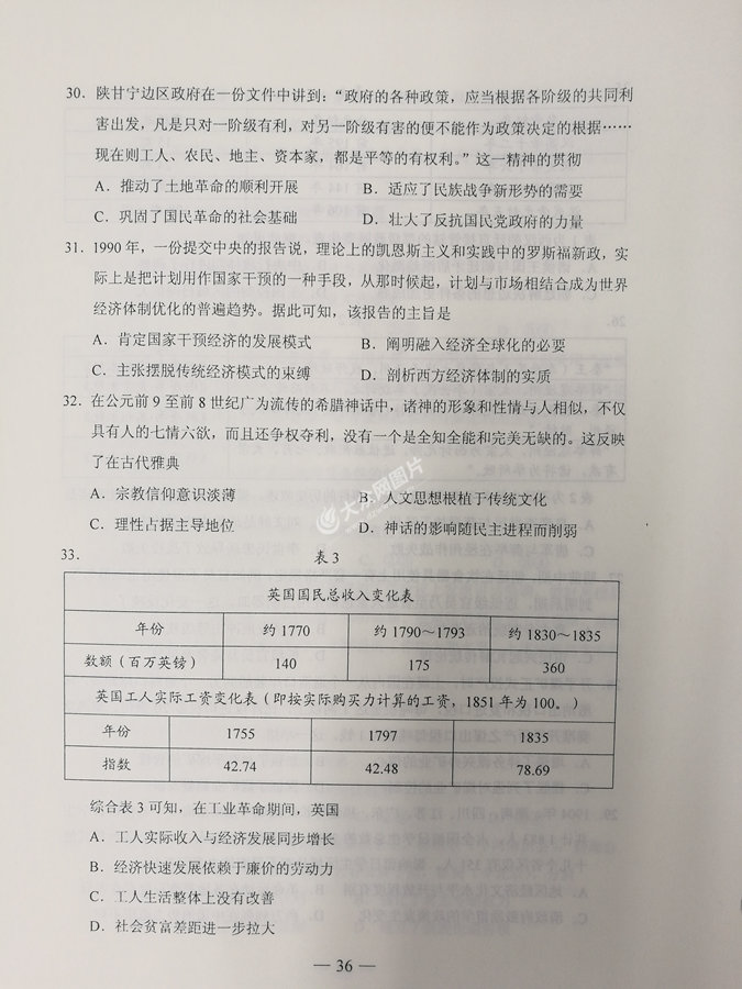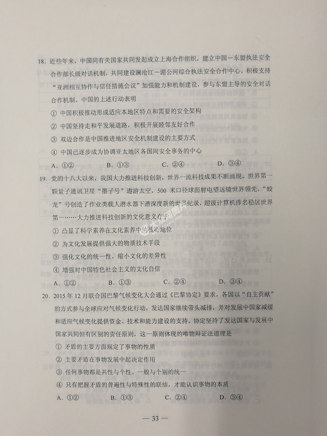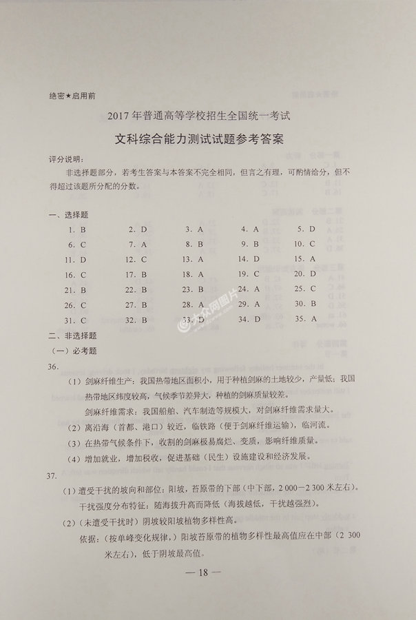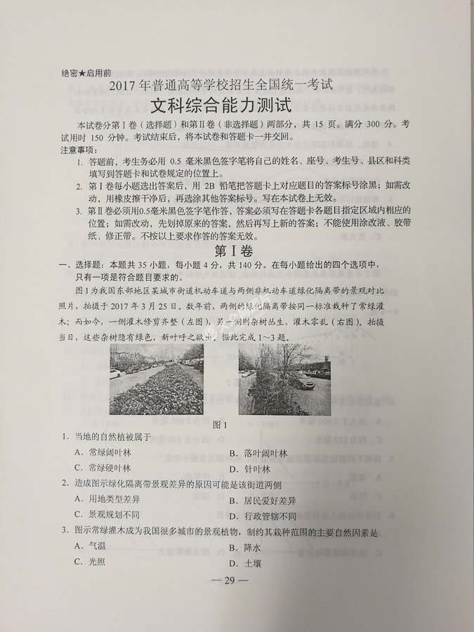 2017年山東高考文科綜合試題及答案