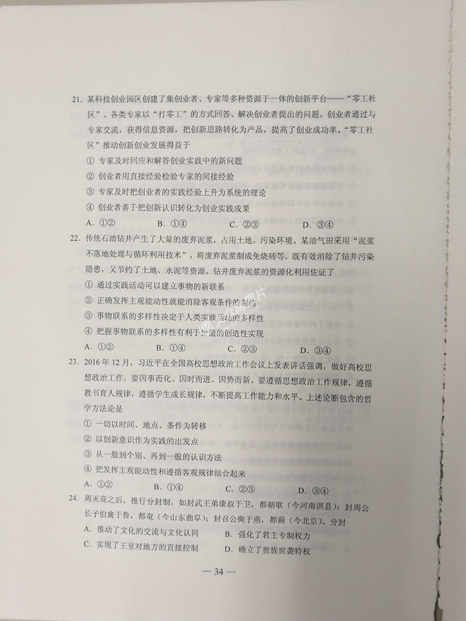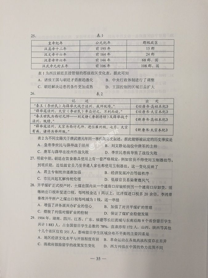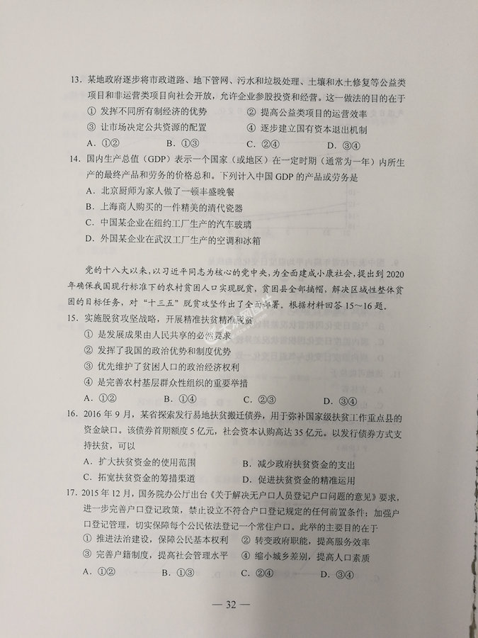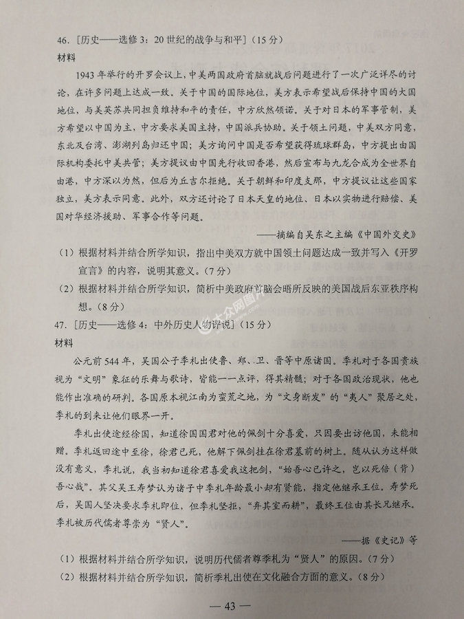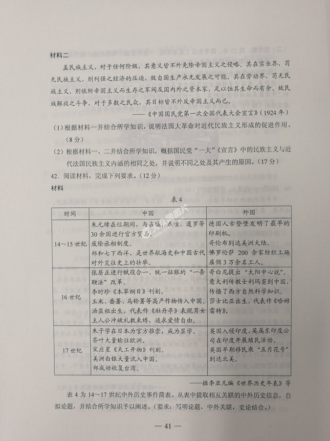 2017年山東高考文科綜合試題及答案
