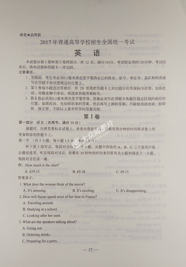 大眾網(wǎng)濟(jì)南6月8日訊 6月8日下午,2017年山東高考落下帷幕。當(dāng)天下午6點(diǎn),山東省教育廳就今年高考實(shí)施情況舉行新聞發(fā)布會(huì),大眾網(wǎng)第一時(shí)間對(duì)試題及答案予以公布。