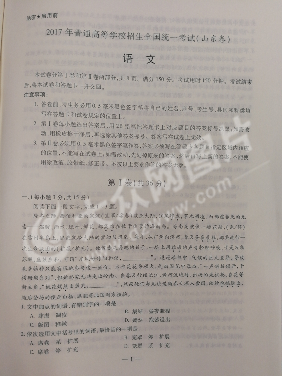 大眾網(wǎng)濟(jì)南6月8日訊 6月8日下午,2017年山東高考落下帷幕。當(dāng)天下午6點(diǎn),山東省教育廳就今年高考實(shí)施情況舉行新聞發(fā)布會(huì),大眾網(wǎng)第一時(shí)間對(duì)試題及答案予以公布。