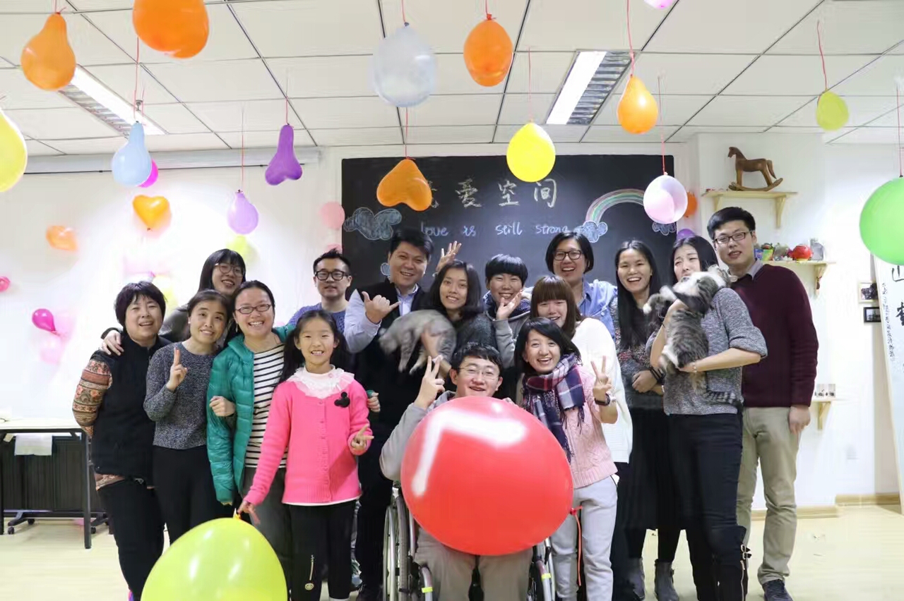 王奕鷗和瓷娃娃罕見病關(guān)愛中心小伙伴們的合影