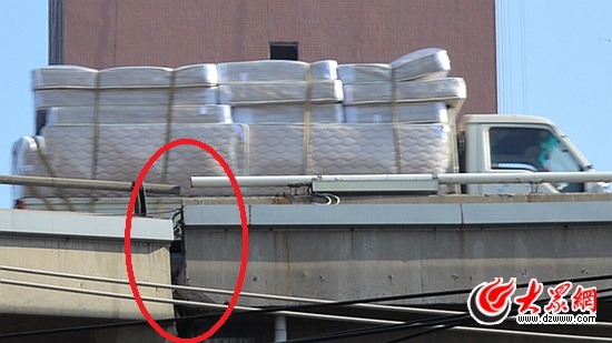 雖然從側(cè)面看“斷裂”明顯,但并不影響橋上路面和車輛通行。(記者 王宗陽 攝)