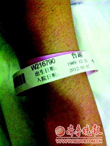 網(wǎng)上發(fā)布的“魯超”的住院手環(huán)。