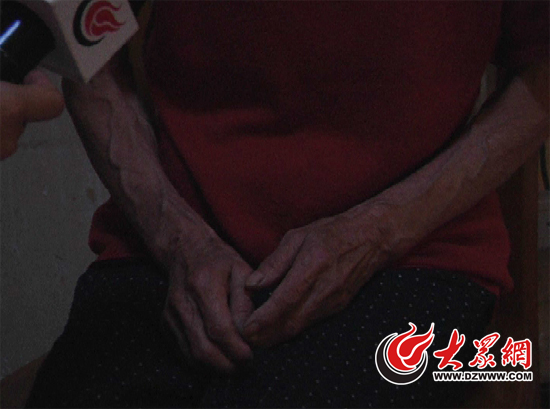 濟南“賣鞋奶奶”接受大眾網記者的采訪