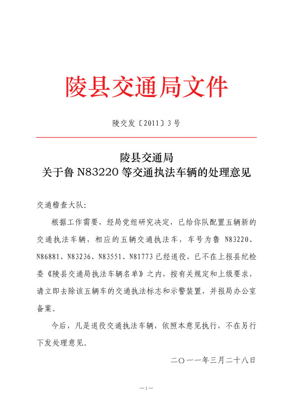 同時,該局還下發了《關于魯N83220等交通執法車輛的處理意見》和《關于下發行政執法標志車輛管理規定的通知》。
