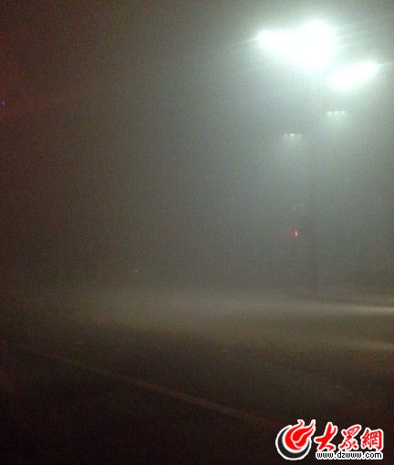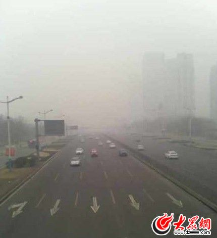 31日早濟(jì)南某道路霧霾嚴(yán)重,網(wǎng)友拍攝