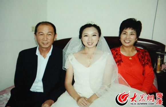 李福振的女兒李璐璐結婚時,一家三口的合影。