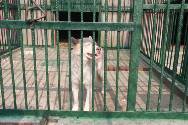 在這只“母狼”被帶走前,大眾網(wǎng)記者與其進(jìn)行了接觸。記者發(fā)現(xiàn),這只“母狼”不僅能聽(tīng)懂記者喚狗的聲音,而且溫順地走到記者的身邊,并允許記者用手撫摸其頭部。圍觀的大部分市民都稱與旁邊籠子里的狼相比,這只“母狼”體型明顯偏小。