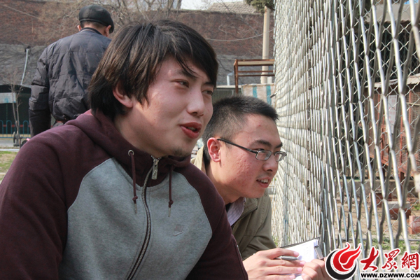 聽(tīng)說(shuō)“野狼”的消息后滕州市民小劉(左)特意趕到公園一看究竟(攝影 韋輝)