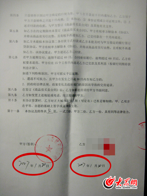 2007年1月20日,業(yè)主就簽訂了購房協(xié)議