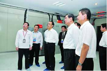 中國聯(lián)通常小兵董事長(左三)在山東聯(lián)通調(diào)研。