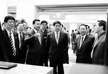 國家旅游局副局長祝善忠(前排中)和山東省副省長才利民(前排左二)等領(lǐng)導(dǎo)參觀山東聯(lián)通旅游信息化建設(shè)成果。