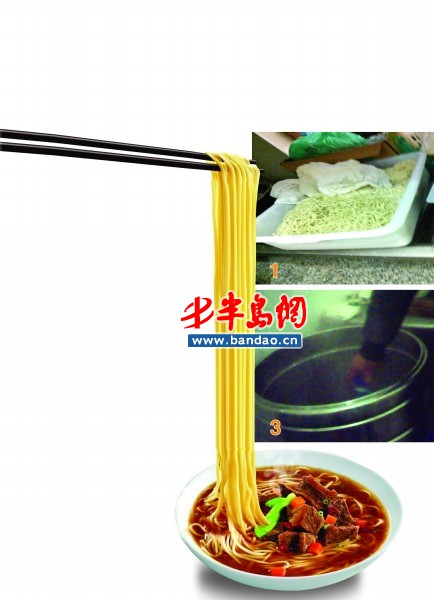 近日,記者恰巧碰到北京聚瑞祥美國加州牛肉面大王一家店面招干活的,就進去“上班”了 。老板是兩個小伙子,對員工特別好 ,還沒干兩天,就給員工每人200元的圣誕節補助。記者干了幾天活,發現這里還算正規,但也有些不容忽視的問題:說是當天面條當天賣,但有的隔夜面變黑了還照樣賣;煮面用的水堪稱“萬能”,既燙菜又刷碗,甚至還用來燙飲料。