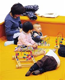作為醫院里的白班醫師,林靜周一到周五的工作很忙,這樣的工作強度到了周末跳到“育兒頻道”也絲毫沒有停歇的意思。周六上午、周日上午,她要從城市西頭跑到東頭,帶不到1歲的兒子翼翼上早教的運動課、音樂課,中午回家吃飯、翼翼午覺后,兩個休息日的下午再根據天氣情況,分別到商場的游樂場或者室外廣場活動一下,兩天中的晚上還要選一天到朋友家,讓翼翼和同齡孩子一起玩。