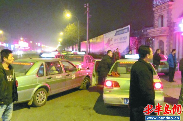 28日晚7時20分,記者接到市民周先生反映后,趕到外貿大廈。此時,路邊停了幾十輛出租車 ,邊上站著很多的哥。“一名毆打的哥的男子剛被民警帶走。”即墨市出租汽車公司車隊隊長周佳龍介紹。