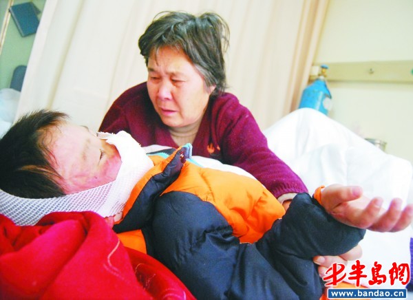 辛秀芬介紹,他們是海陽市留格莊鎮東邵家村人,這次來青島原本是要給被燒傷的女兒和外孫做整形手術,“這次好不容易東拼西湊了一萬元,原本想給閨女已經變形的右腳和外孫一起做手術,可這錢根本不夠用,光孩子這次嘴上的手術就花了七八千元,醫生說其實我閨女更應該手術治療,可是錢不夠,為了不讓外孫今后變得殘疾,閨女只能放棄了,這次先不治了。”說到這里,辛秀芬又流下了眼淚。