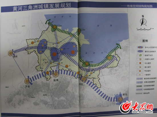 《黃河三角洲城鎮發展規劃》概括為“三大戰略構思、一個城市區、兩條城鎮帶、四港四區四節點、五大功能定位、六級規模結構”。