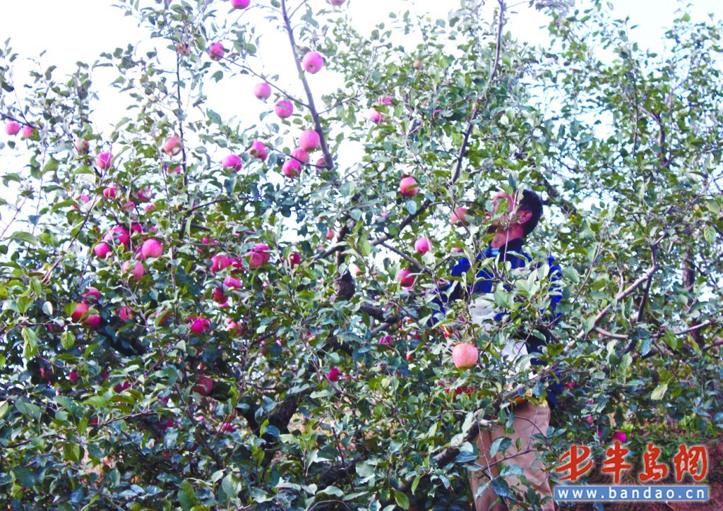 如今,蘋果采摘已經進入尾聲,果農正在采摘樹上所剩不多的蘋果。