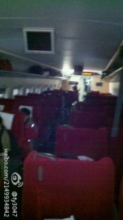 網(wǎng)友“FY3047”在微博上傳列車內(nèi)照片并稱,“這就是目前情緒穩(wěn)定的G16,黑乎乎4號(hào)一等車”。(網(wǎng)友供圖)