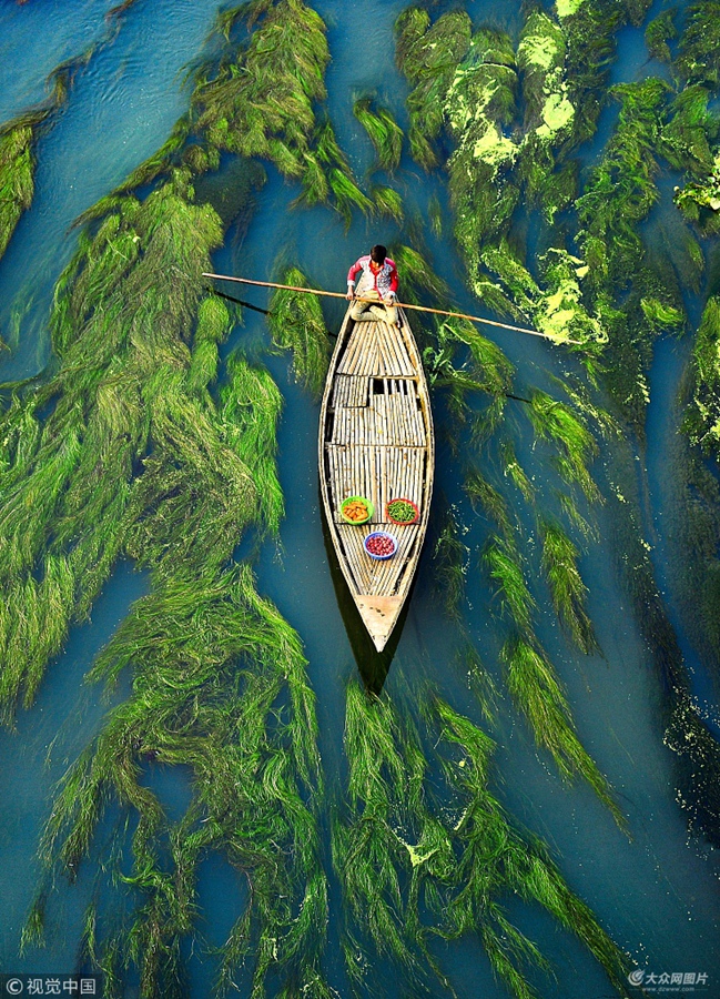 當(dāng)?shù)貢r間2018年5月23日,孟加拉博格拉縣戈羅多亞河,27歲的攝影師Abdul Momin站在橋上拍景。船上的人都是當(dāng)?shù)鼐用瘢?jīng)常通過這條河前往村里的集市和其他地方。