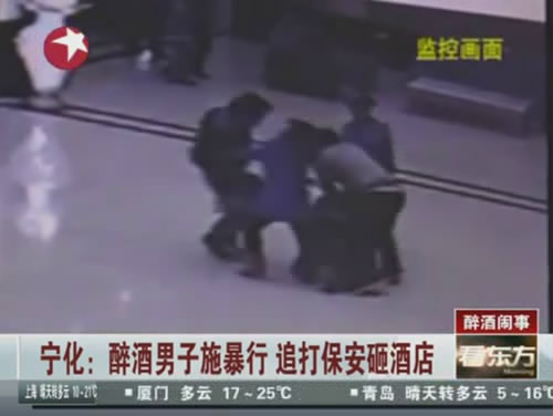 監控拍下醉酒男子與朋友追打保安砸酒店