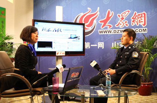 16日上午,濟南市公安局槐蔭分局大金莊派出所所長陳劍和民警回答網友提問。