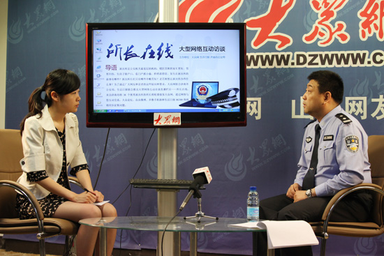 5月17日上午,濟南市公安局歷下分局東關大街派出所所長劉衛東做客“所長在線”與網友讀者互動交流。(曹亮 攝)
