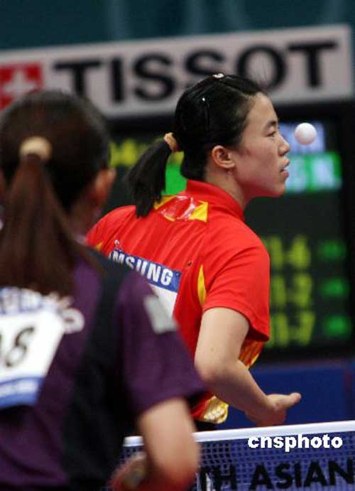 第六局比賽開首后,帖亞娜就先得3分,以3:0領先,王楠頑強的把比分扳成5:6后,帖亞娜改變打法,又將比分拉開,并最終以11:7取勝,把大比分變成3:3。