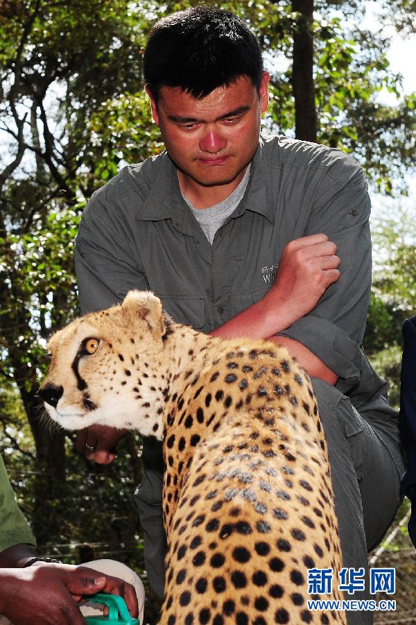 8月16日,在位于肯尼亞野生動物管理局總部內(nèi)的“內(nèi)羅畢動物孤兒院”內(nèi),姚明與一只豹子親密接觸。當日,籃球明星姚明訪問了肯尼亞野生動物管理局。從8月10日開始,姚明前往肯尼亞和南非,開始他為期十余天、以反盜獵為主題的非洲野生動物保護紀錄片拍攝之旅。新華社記者丁海濤攝