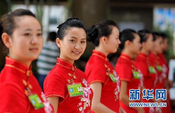 4月13日,禮儀小姐在與會代表下榻的博鰲索菲特大酒店迎候嘉賓。