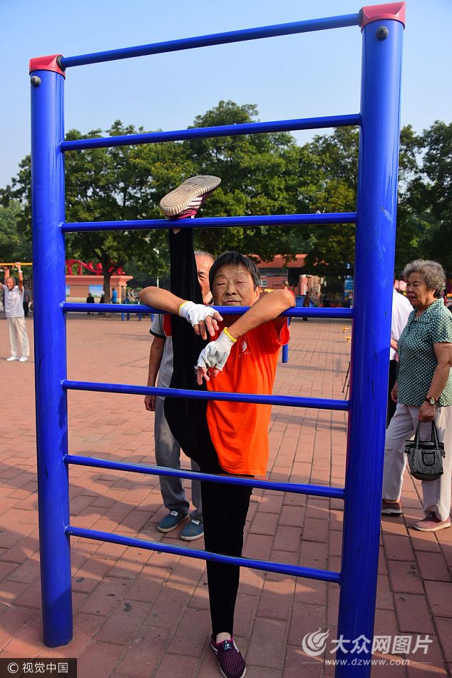 9月13日早上,在鄭州市建設路五一公園,有一位老太太在此練金雞獨立、倒掛金鉤,一練就是倆小時,令人嘆服,連年輕人都自愧不如。老人今年86周歲,名叫陳玉玲,53歲那年由于工作原因,患上了嚴重的關節炎、頸椎病、腰肌勞損等病,嚴重時走不了路,上不了公交車,生活不能自理,一生節儉的她為了不給兒女們添負擔,便天天堅持到公園鍛煉身體,這一練就是31年。如今,以前的老毛病沒了,除了有點耳背外,眼不花,思路清晰,幾乎很少有感冒發燒。她每天上午下午各練兩個小時,她身體柔韌性非常好,練功之時,會有很多人圍觀,精彩的表演會爆發熱烈的掌聲和歡呼聲。