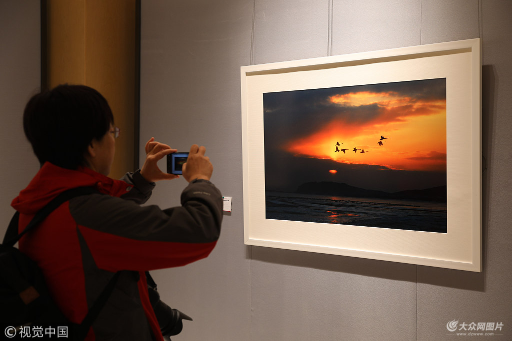 2018年11月25日,山東威海,榮成市首個大天鵝主題攝影展在首次開館的天鵝湖美術館舉行。