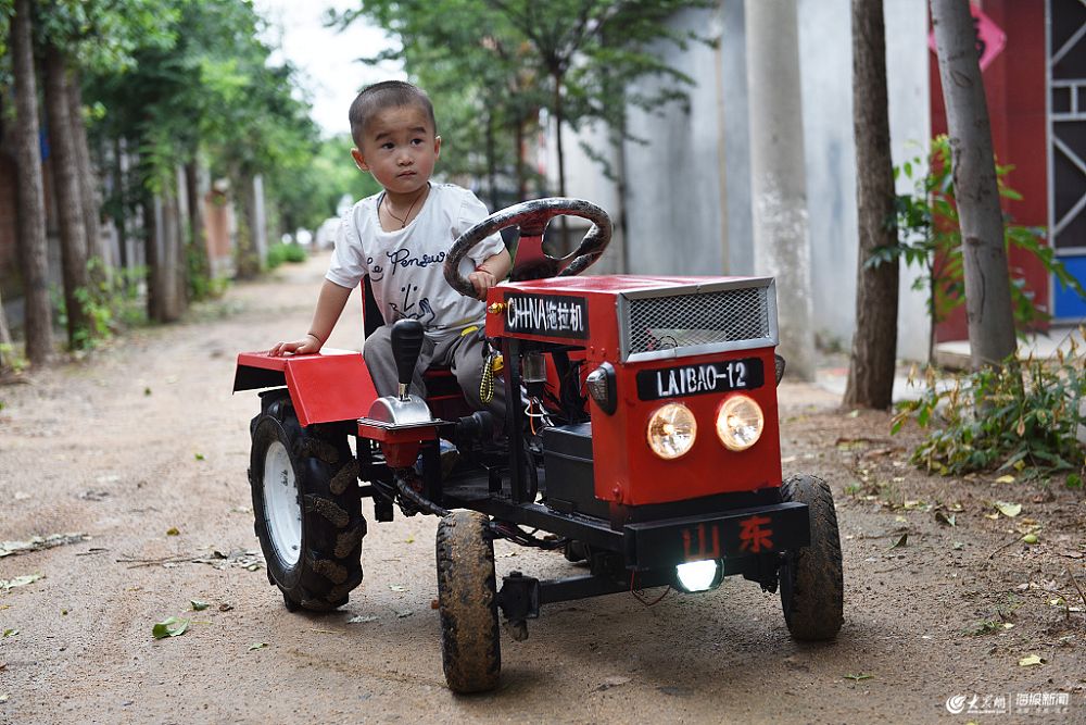 2019年7月7日,在山東省日照經(jīng)濟(jì)技術(shù)開發(fā)區(qū)奎山街道西河村,村民宋成軍造了一輛“迷你拖拉機(jī)”一時成為村里的新鮮事,每當(dāng)他的兒子開著這輛“迷你拖拉機(jī)”上街玩耍時,都會吸引人們的圍觀。宋成軍說:“回頭率百分之百。”