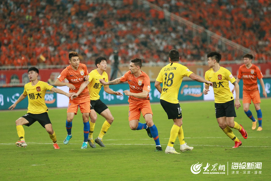 大眾網·海報新聞濟南8月3日訊(記者 亓翔)今晚7點35,山東魯能在主場迎戰廣州恒大。下半場韋世豪、埃爾克森3分鐘內連進兩球,第88分鐘保利尼奧抽射鎖定勝局。山東魯能最終在主場0:3不敵廣州恒大。埃爾克森在本場比賽中打入了加盟中超之后的第102粒進球,至此與武磊并列在中超歷史射手榜頭名。