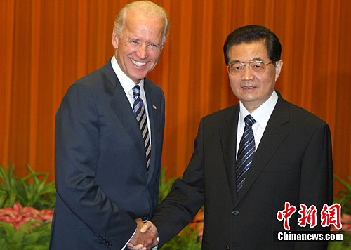 [提要] 8月19日下午,中國國家主席胡錦濤在北京人民大會堂會見美國副總統拜登。拜登是應國家副主席習近平的邀請,于8月17日至22日對中國進行正式訪問。