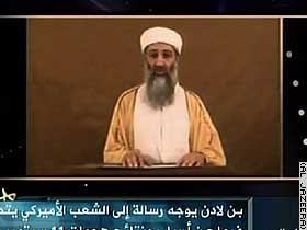 2003年9月10日:兩年來(lái)本·拉登第一次出現(xiàn)在錄像帶上。錄像畫(huà)面是拉登與其副手扎瓦希里在山區(qū)行走。在伴隨錄像的兩段錄音中,拉登對(duì)“9·11”事件造成的巨大災(zāi)難表示幸災(zāi)樂(lè)禍,同時(shí)也提及了“9·11”事件中的5名劫機(jī)者的名字。扎瓦希里也威脅將有更多針對(duì)美國(guó)的襲擊。